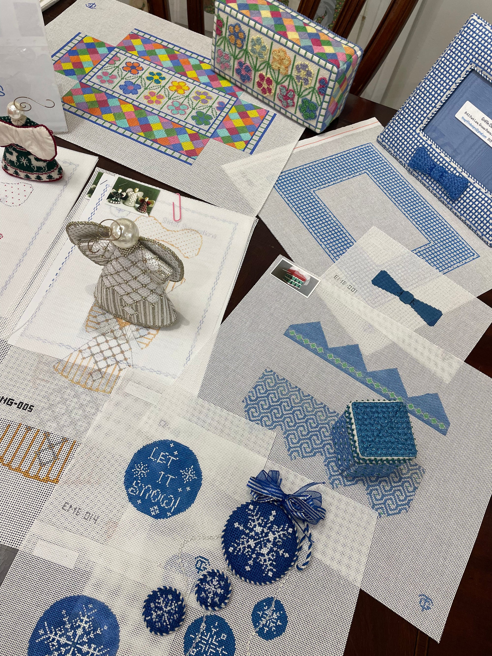 Explore our diverse inventory of hand-painted needlepoint canvases and projects available in stock. Shop online or visit our retail location in Morganton, North Carolina.