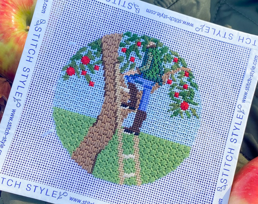 Stitch Style NeedlepointEach canvas is a 4" round painted on 18 count canvas and includes a free stitch guide by Jinny McAuliffe.