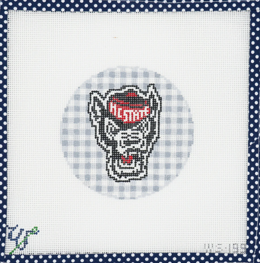 Wipstitch NeedleworksMeasures 4" round. Hand-painted on 18 mesh canvas.