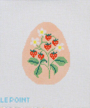 Le Point StudioStrawberry Egg Needlepoint Canvas is painted on 13 mesh, and measures 3.5” by 4.5” , with a total canvas size of 8” by 9“.