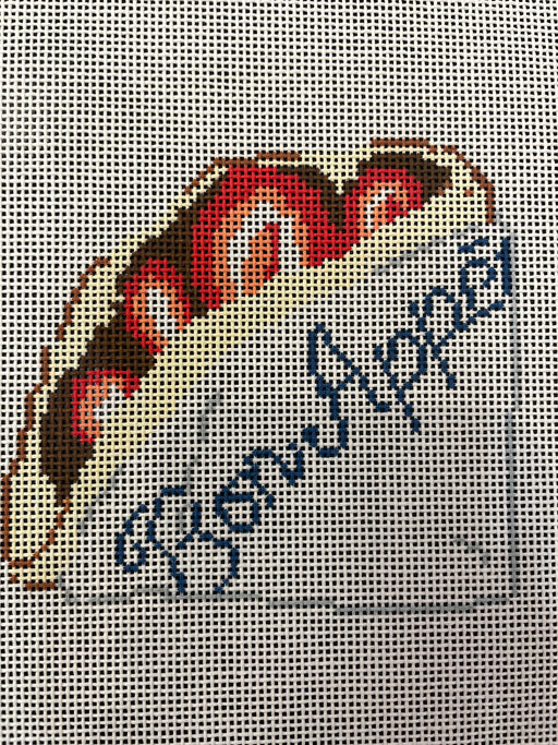 NOLAHand painted on 18 count mono canvas. Design size approximately 4" wide x 3.25" tall.
