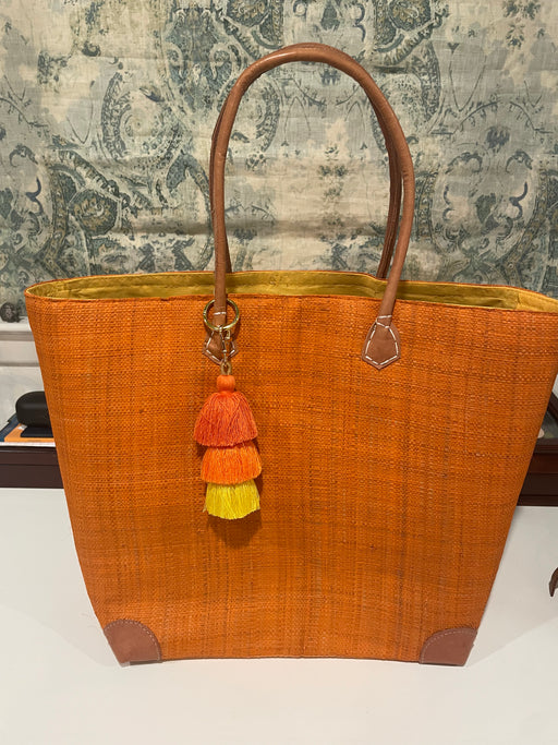VoilaHang your canvases, attach your canvases or both on these fun summer raffia bags from Madagascar! Cotton fabric closure on top. Approxima...