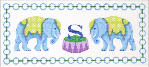 Blue Elephants w/ Jewelry Chain Border & Monogram Space – blues, greens & purples