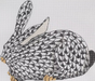 Herend-inspired Fishnet Crouching Bunny – black w/ gold (facing left)