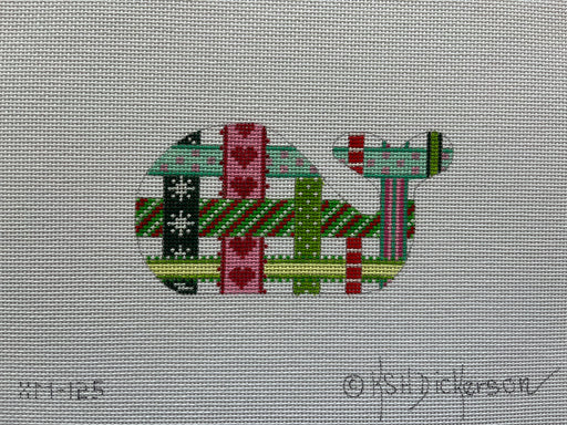 Christmas Ornament – Mini Whale – Woven Ribbons in Christmas colors