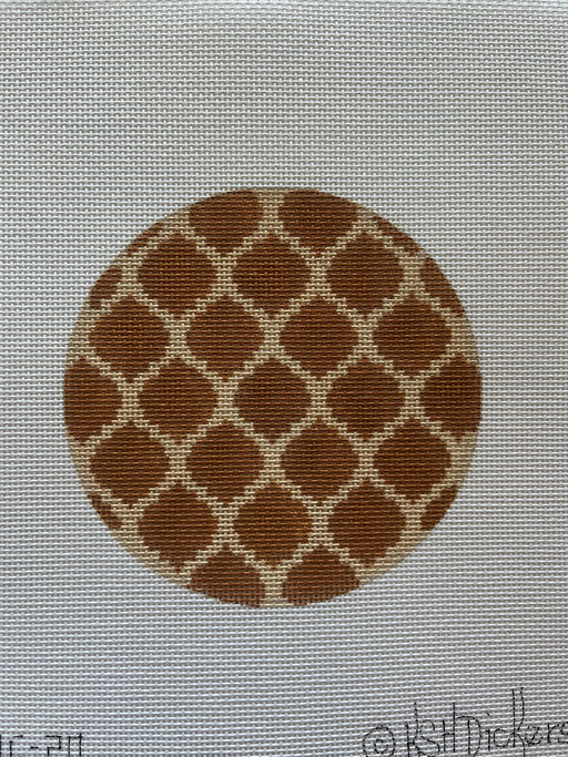 Planet Earth & Lee 4” Round – Criss Cross Lattice – tans w/ brown letter (specify monogram or blank)