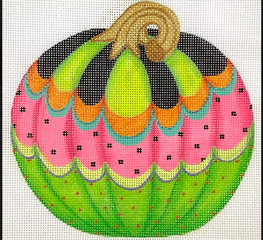 Funky Punkin Stand-up #7 – black/lime striped top, orange/turquoise/watermelon/lime middle, green bottom