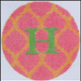 Bright Disk Letter – Watermelon & Tangerine Quatrefoil Damask, Grass Green Letter