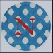 Bright Disk Letter – Marine Blue w/ White Polka Dots, Red Letter