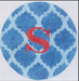 Bright Disk Letter – Royal & Sky Blue Quatrefoil Damask, Red Letter