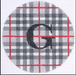 Bright Disk Letter – Gentleman’s Plaid – grays, white & red w/ Black Letter