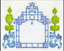 Chinoiserie Letter – Pagoda w/ Foo Dogs & Topiaries – lues w/ greens (specify letter or blank)