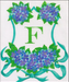 Monogram Crest – Hydrangeas & Ribbon – blues, lavenders, turquoise (specify letter or blank)