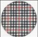 Planet Earth & Lee 4” Round – Gentleman’s Plaid – grays, black & red w/ red letter (specify letter or blank)