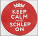 Planet Earth & Lee 4” Round – Keep Calm & Schlep On – white on red