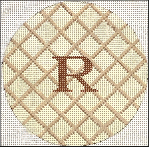 Planet Earth & Lee 4” Round – Criss Cross Lattice – tans w/ brown letter (specify monogram or blank)