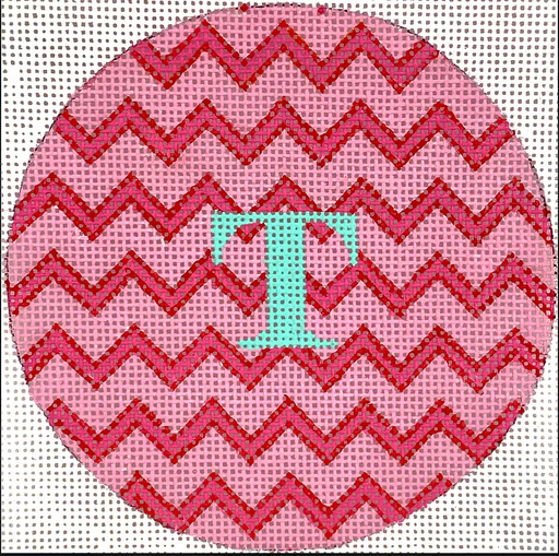 Planet Earth & Lee 4” Round – Zigzag – pinks & red w/ turquoise letter (specify monogram or blank)