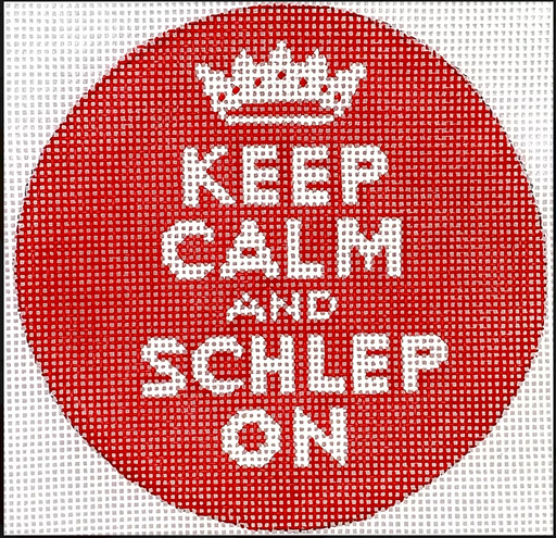 Planet Earth & Lee 4” Round – Keep Calm & Schlep On – white on red