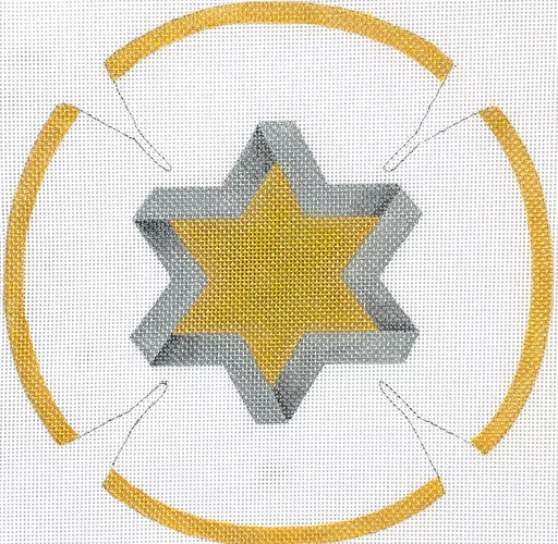 Kippah – Star of David – golds & silvers on white