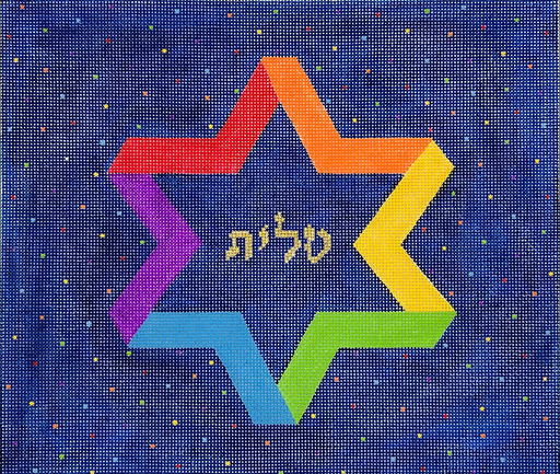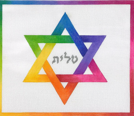 Tallis Bag – Rainbow Star of David – multi on white