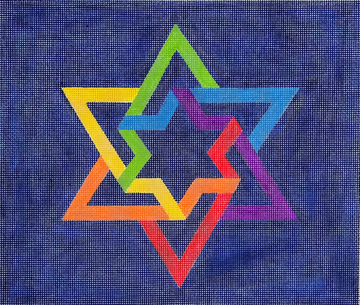 Kippah – Rainbow Star of David – multi on deep blue