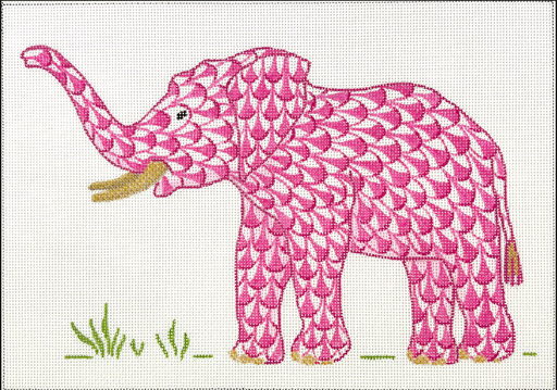 Herend-inspired Fishnet Elephant w/ Trunk Up – pink w/ gold