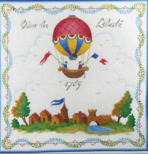 “Vive la Liberté” Rural French Scene w/ Hot Air Balloon