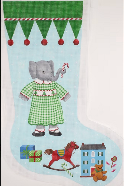 Kelly Rightsell Stocking – Elephant Girl in Green Checked Dress