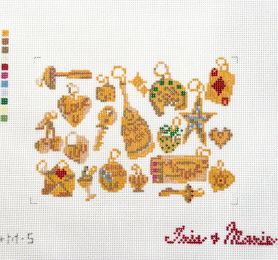 Morgan Julia13-Count Mesh Hand-Painted Needlepoint Canvas featuring a Collection of Charms - artwork by Shana Wanco from Iris and Marie Design Size: Approxi...
