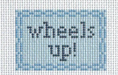Wheels Up! needlepoint canvas on 13 mesh canvas. This canvas is perfect for beginners or as a quick project that can be self finished as a luggage tag or wallet insert.