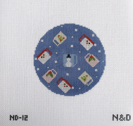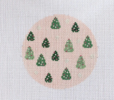 View full detailsThe Pink Trees Round Ornament canvas on 18 mesh canvas. The design has Christmas trees and snowflakes on a light pink background. STITCH GUIDE SOLD...