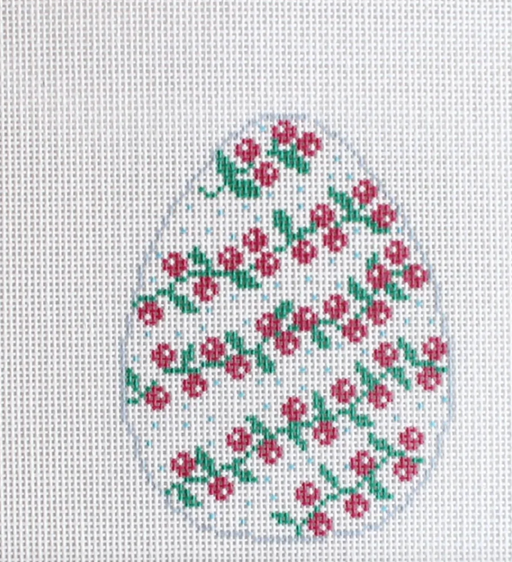 The Pink Vine Egg needlepoint canvas on 18 mesh canvas. The design features a winding vine with pink flowers. STITCH GUIDE SOLD SEPARATELY