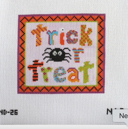 View full detailsThe Colorful Trick or Treat Sign needlepoint canvas on 13 mesh canvas. Canvas features "Trick or Treat" in colorful patterns with a spider. STITCH ...