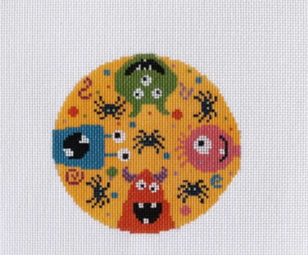 View full detailsThe Colorful Monsters Round Needlepoint Canvas on 18 mesh canvas. Canvas features colorful monsters and spiders on a round ornament. STITCH GUID...