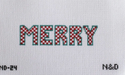 The Merry Checkerboard Letters needlepoint design on 18 mesh canvas. The design has MERRY in green and red in a checkerboard pattern.