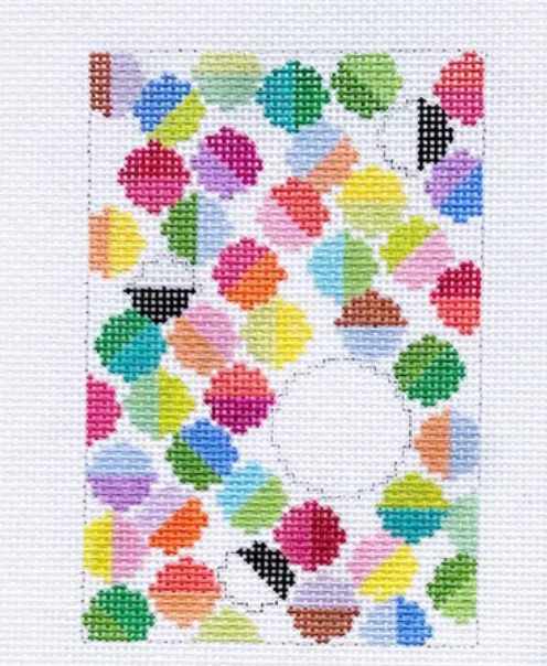 hand stitch-painted canvas on 18 point mesh design: approximately 3" x 4.5"